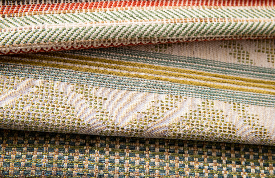 ‘Burford Weaves’ is a versatile collection of three sophisticated decorative weaves. ‘Burford Weave’ a charming semi-plain checkerboard, ‘Burford Stripe’ a highly textural design featuring a relaxed ikat stripe and ‘Fairfax’ a wonderfully tactile cloth featuring horizontal stripes and a miniature geometric pattern inspired by antique rugs and kilims.